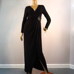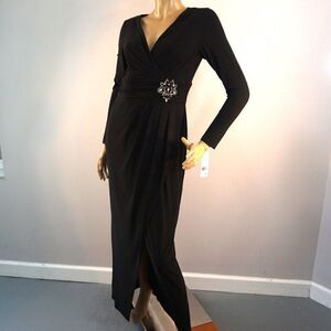 Eliza J Black Jeweled Dress Size 8 Prom Cocktail Party Faux Wrap Maxi Dress NWT