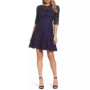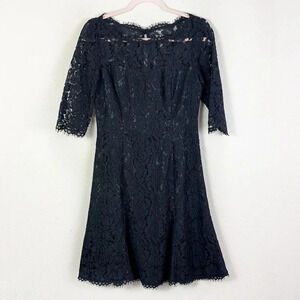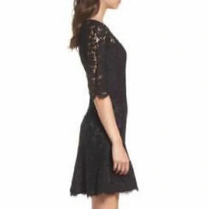 Eliza J Black Lace Mini Fit and Flare Cocktail Dress 3/4 Sleeves Size 2