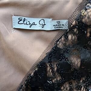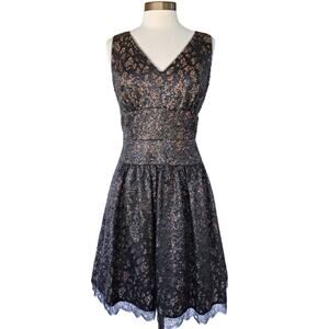 Eliza J Black Lace Sequin Fit & Flare Dress Size 12 Cocktail Party Sleeveless