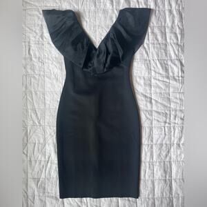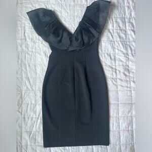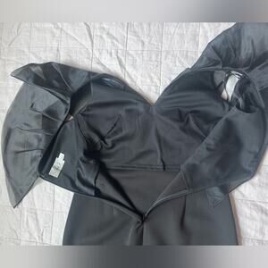 Eliza J Black Organza Ruffle Sleeve Dress Formal Wedding Event Cocktail Sexy- 6