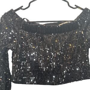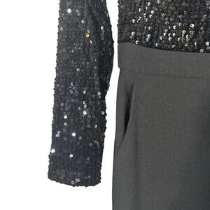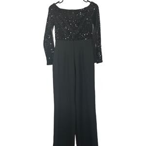 Eliza J Black Sequin One Piece Zipper Back Pants Jumpsuit W/ Pockets Women Sz 4