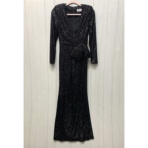 Eliza J Black Sequin Wrap Maxi Dress Size 4 NWT