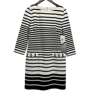 New with tags Eliza J Striped Dress in Black and White Stripes 3/4 Sleeves Faux Pockets Lined Women’s Size 6