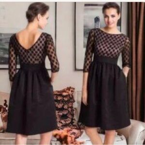 Bought this for a wedding on Poshmark. So cute! I got so many compliments. Now it’s time to reposh! Chic midi dress with polka dot mesh sleeves. Flattering fit and flare design. Ideal for special occasions.