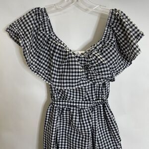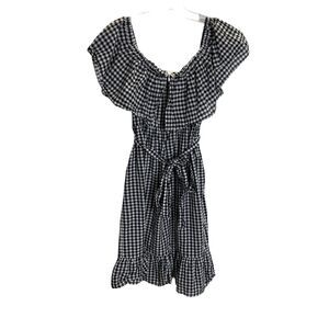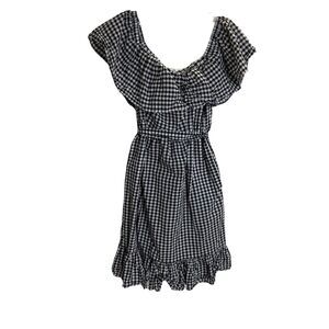 Elegant gingham midi dress with ruffle details. Perfect for versatile styling.