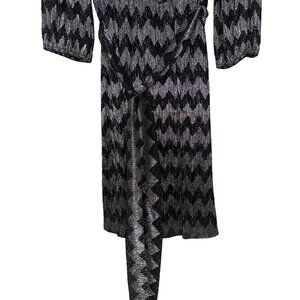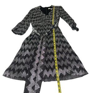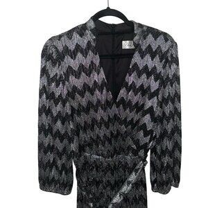 Eliza J. Black/Silver Metallic Chevron Faux Wrap Dress Sz 14