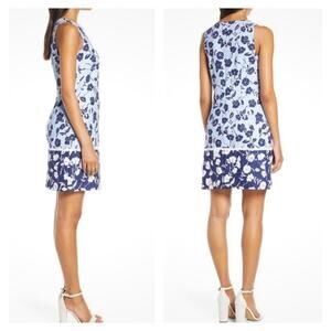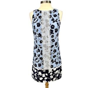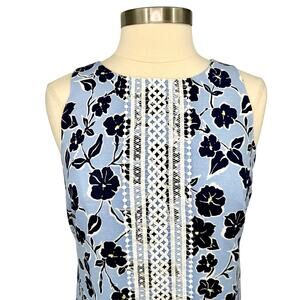 Eliza J Blue Floral Linen-Blend Shift Dress Lace Trim Coastal Granddaughter Sz 6