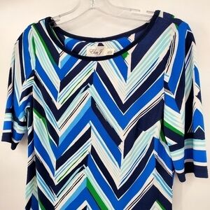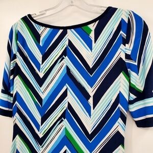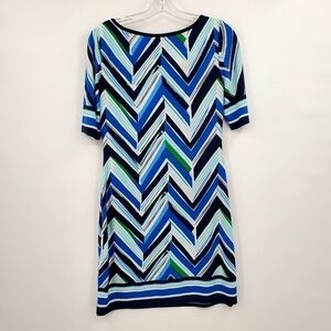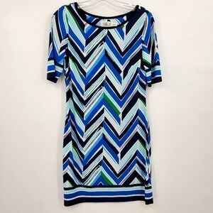 Eliza J Blue Half Sleeve Chevron Shift Dress, Size 4.
