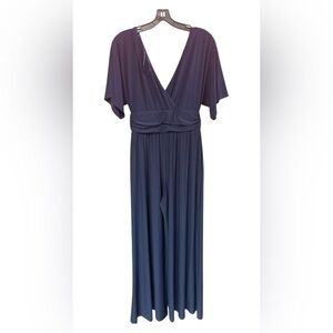 Eliza J Blue Plunge Dolman Sleeve Maxi Gown. PALAZO