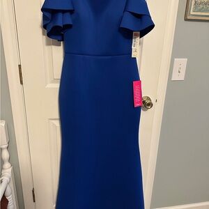 Eliza J Blue Sheath Dress with Flutter Sleeves