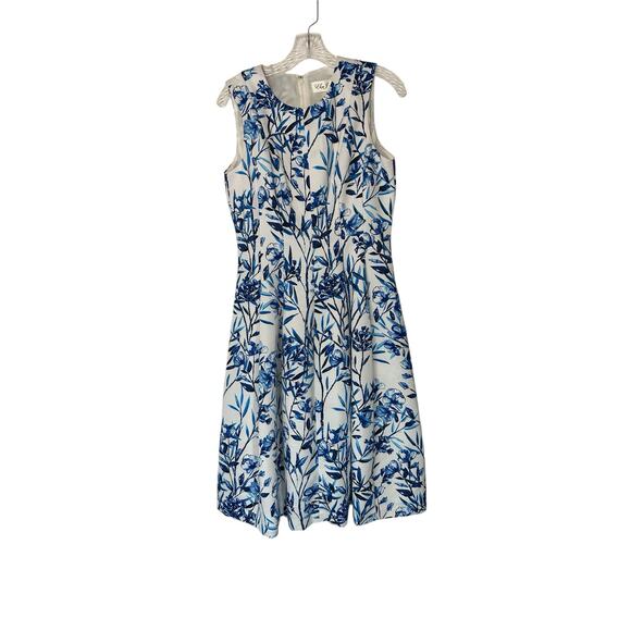 Eliza J Blue White Floral Cocktail Hour Sleeveless Sheath Midi Dress Size 6