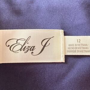 Eliza J Blue With Black Lace Overlay Dress Size 12 Goth Romantic Whimsigoth Witchy Fairy Evening. The color of this dress is not quite navy but a purple blue with black lace overlay. Fit & flare style. Approximately knee length. Zip back. Three quarter length sleeves are sheer lace at the bottom in a slight bell shape.