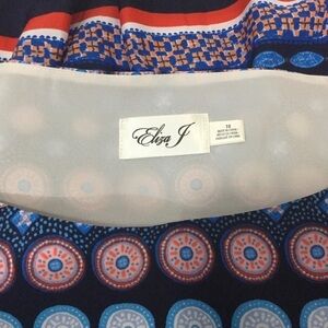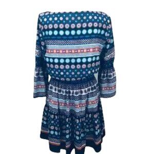 Eliza J Blue and Coral Multi Colored Dress Circle Print Mid-Century Vibe. Sz. 10