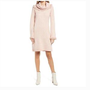 Eliza J Boho Comfy Fall Turtleneck Shift Sweater Dress Cream White Size Small