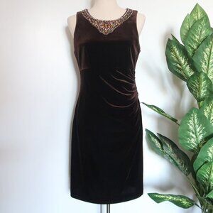Eliza J. Brown Velvet Rhinestone / Gem Embellished Ruched Sheath Dress Size 8