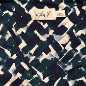 Eliza J Cap Sleeve Faux Wrap Belted Shirred Midi Dress Size 4 Green Blue White
