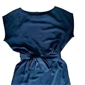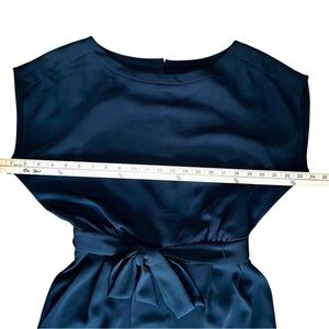 Eliza J black cap sleeve jumpsuit size 6 hidden zipper back lined tie belt perfect for the office or a night out. Pre owned like new condition no signs of wear see photos for measurements