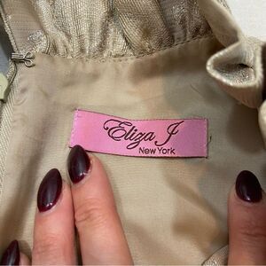 Eliza J Champagne Color Floral Brocade Ruffle Neckline Sleeveless Dress Medium