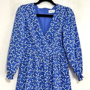 Eliza J Cherry Print Ruffle Long Sleeve Dress Blue Size 4