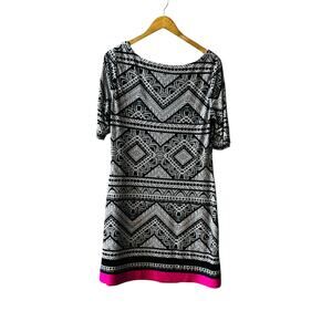 Eliza J Chevron Multicolored Short Sleeve Dress Size 14