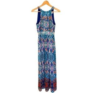 Eliza J. Chiffon Teal Multi Halter Dress in excellent gently used condition with no visible flaws.