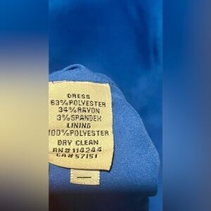 Dress: 63% polyester, 34% rayon, 3% spandex
