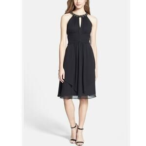 Eliza J Cocktail Dress 10 Black Chiffon Embellished Neck Elegant Feminine Event