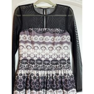 Eliza J Cocktail Dress Size 6 Purple Floral Mesh Sleeves Fit & Flare Whimsygoth, great condition.