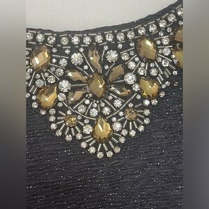Eliza J Cocktail Sparkle Gray Ruched Dress Size 10 Knee Length Beaded Neckline