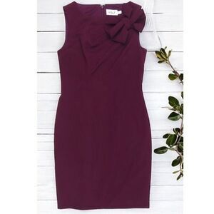 Eliza J Cocktail Sheath Dress Purple Plum Size 4 Asymmetrical Bow Elegant