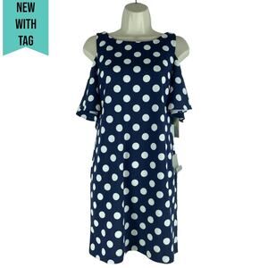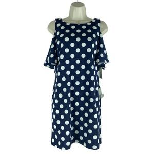 NEW Eliza J Cold Shoulder Polka Dots Mini Dress Navy White