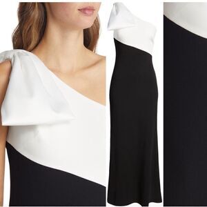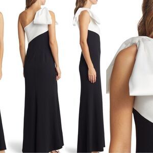Eliza J Colorblock One-Shoulder Gown with Bow Detail Size 14
