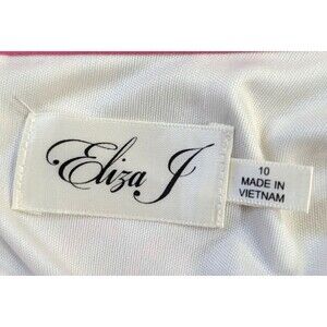 The Eliza J Colorful Moroccan Medallion Sheath Career Dress in size 10 is a vibrant and eye-catching garment perfect for various occasions such as workwear, parties, or even weddings. The dress features a colorful geometric pattern, long sleeves, and a round neckline with a zip closure for easy wear. Made from polyester knit fabric, this midi-length dress is lined and offers a stretchy fit for added comfort. The dress also features accents like an exposed zipper and contrasting trim, making it a stylish and versatile addition to any woman's wardrobe.
