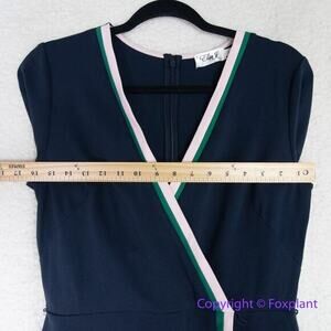 Eliza J Contrast Trim Surplice V-Neck Wrap blue Dress, size 8