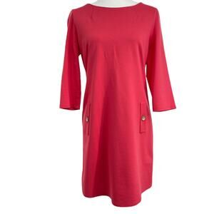 Eliza J Coral Shift Dress 3/4 Sleeve Boat Neck Classic Career Women's Sz 8