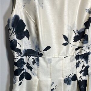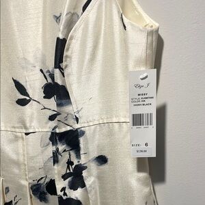 Eliza J Cream and Black Water Color Flowers Satin like Tiered Midi Dress