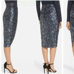 Eliza J Dazzling sequin Faux wrap Dark blue skirt Sz 14