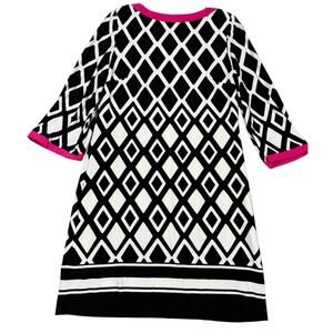 Eliza J Diamond Print Shift Dress Black White Pink Size 6P