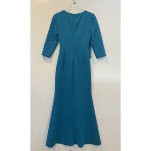 Eliza J Drape Bow Crepe Sheath Formal Dress Ocean Blue Gown Womens Size 8