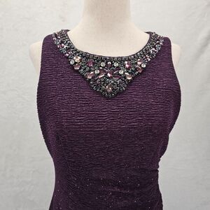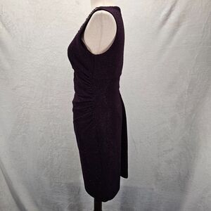 Eliza J Dress 6 Jeweled Neck Glitter Purple Midi Length Sleeveless Ruched Side