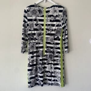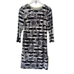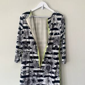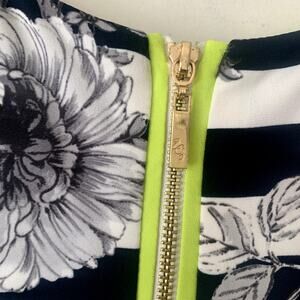Eliza J Dress Black Floral Stripe Sheath Dress Size 8 Wedding Guest Party Neon