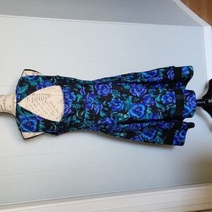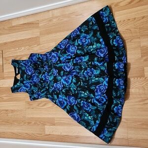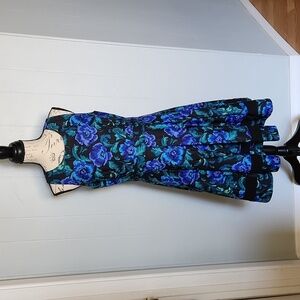 Gorgeous! Eliza J Black Background Blue Floral Print - Sleeveless - Black Semi Sheer Hem, Detail Keyhole Back, lined. Has pockets. Size 12. Great condition with no holes, stains or rips.