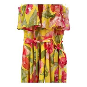 Eliza J Dress Floral Halter Neck high low yellow size 4 E0511