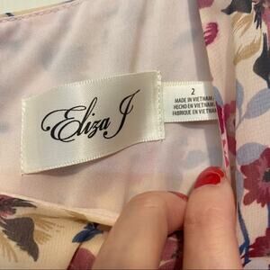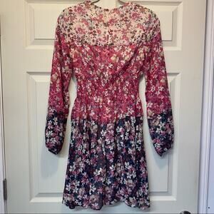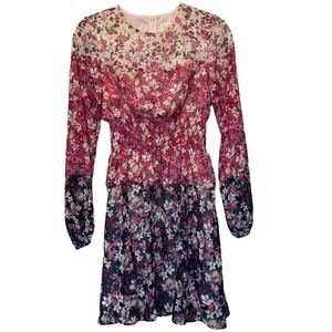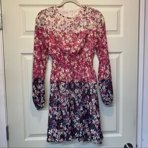 Eliza J Dress Floral Pink Purple Sheer Long Sleeve Cinched Waist Size 2