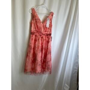 The Eliza J Dress Overlay Sleeveless Halter Top is a stylish and elegant dress in a size 6, featuring a beautiful floral pattern in a soft pink color. The V-neckline and sleeveless design add a touch of sophistication to the halter top, while the A-line silhouette and fit & flare style flatter the figure. This knee-length dress is perfect for both party/cocktail and casual occasions, making it versatile for different seasons like summer and spring. The dress is designed for regular sizing and should be dry cleaned to maintain its quality. Perfect for any fashion-forward woman looking for a chic and comfortable outfit option.
