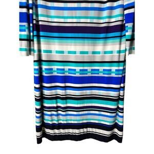 Eliza J Dress Size 14 Blue White Geometric Striped 3/4 Sleeve Knit Casual Shift