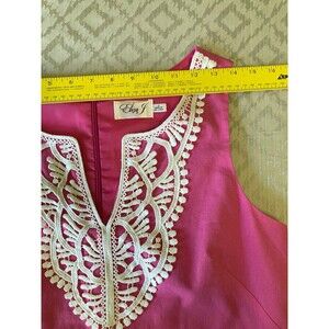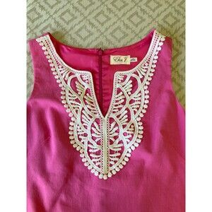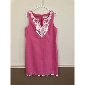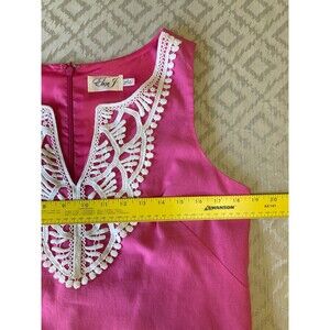 Eliza J Dress Sz 10 Pink Linen White Crochet Tassels
