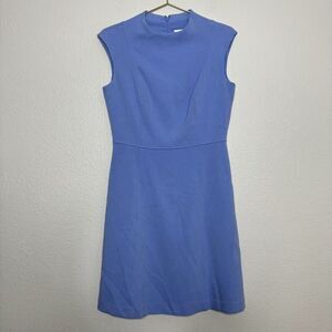 Eliza J Dress Sz 8 Sheath High Neck Blue Stretch Cap Sleeve Modest Pockets Lined
