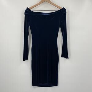 Eliza J Dress Velvet Off the Shoulder Mini Long Sleeves Zips Navy Blue Womens 2
