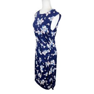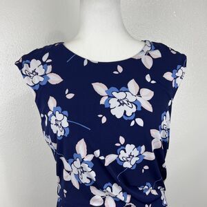 Eliza J Dress Women 10 Blue White Floral Allover Print Cap Sleeve Sheath Stretc